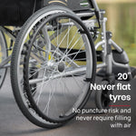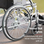 • 20” Never-flat Puncture proof rear tyres that require no air