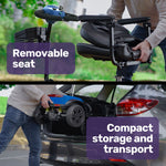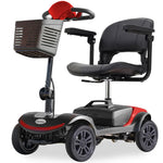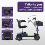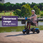 Regain independence the new SmartRider Mobility Scooter from Equipmed. The controls are simple and intuitive for anyone to become familiar with, it has a sensible speed of up to 8km/h, a generous range of 15-25km and a battery level meter on the dash. Further convenience is assured thanks to Flat-Free tyres that never require filling with air! The SmartRider Electric Mobility Scooter is a pleasure for all kinds of everyday use with thick comfortable seat padding and a compact design that offers an impressive turning circle.