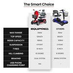 Regain the independence you deserve, with the Extra Large sized VentureCruise Series Mobility Scooter. Why pay upwards of $3000 for a similar sized and specced model? This premium carefully designed and fairly priced model from Equipmed has everything you need! Extra Large Size (comfortable for riders of all sizes) This sturdy XXL sized model offers a stable ride.